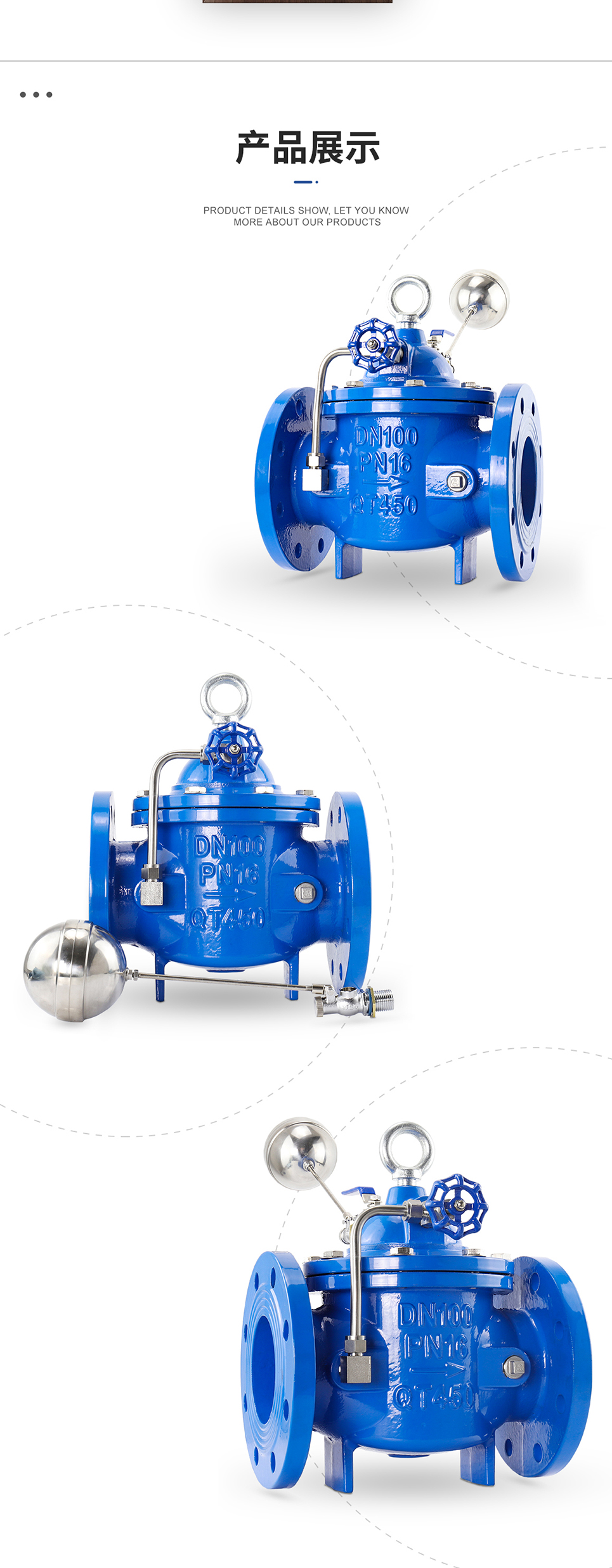 100X遙控浮球閥由主閥、針閥、球閥、浮球閥、微型過濾器等組成水力控制接管系統,調定后,自動控制液面高度。100X遙控浮球閥直接利用液面控制,不需要其它裝置和能源,保養簡便,液面控制準確度高,不受水壓影響,密封可靠。100X遙控浮球閥廣泛用于高層建筑、生活區等供水管網系統的水塔、水池等設施的液面控制。 |